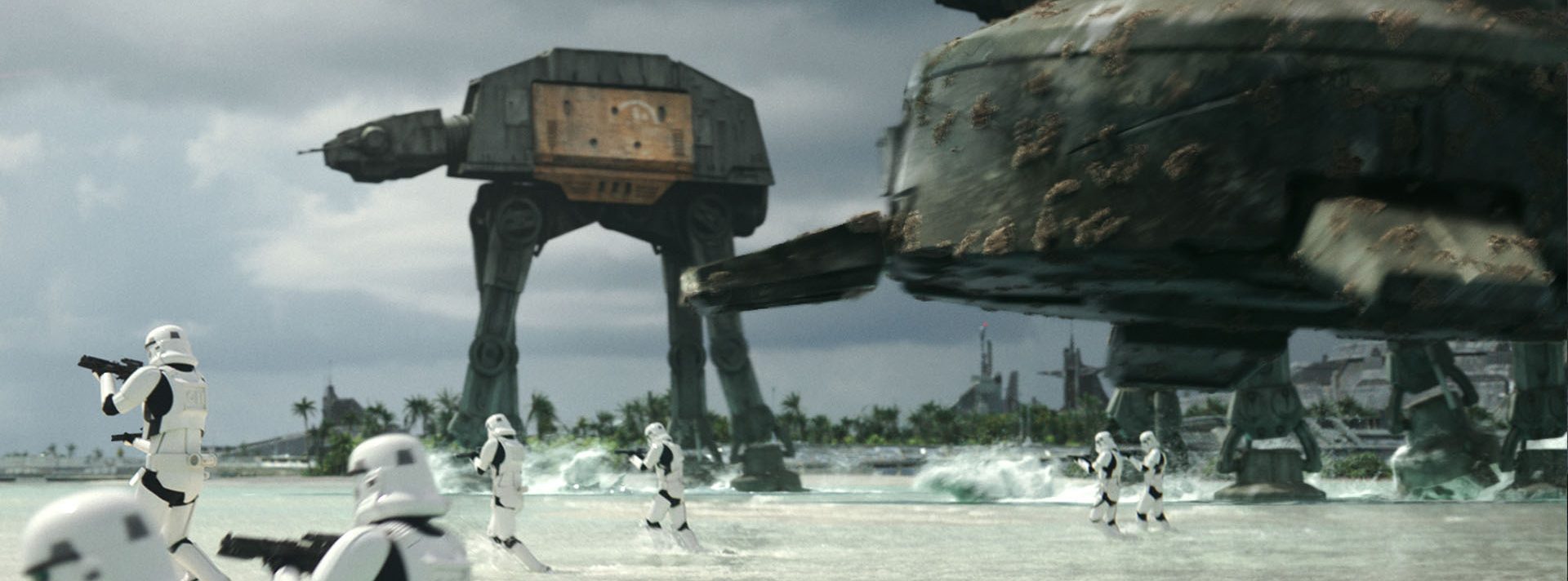 The visual effects team made use of real-time rendering for scenes depicting the characters traveling in various ships throughout the film and for select shots of K-2SO, the dry witted former Imperial security Droid. Sets were also scouted through the use of StageCraft VR and ILM provided director Gareth Edwards with its StageCraft virtual camera system so he could choreograph and shoot coverage for a number of all CG sequences imbuing them with the same organic camera movement as Edward’s live action work on the film.