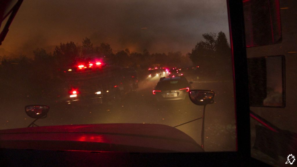 ILM broke up the reference megaclip into separate asset types. “We had shots within the smoke cloud, shots outside of the smoke cloud, big fires, small fires, brush fires, trees burning, houses burning, and cars burning,” Zaretti recalls. “There were fire tornadoes; I didn’t even know that was a thing! We were spoiled with references to the point where the references began to contradict each other because there’d be wind blowing in two different directions in the same piece of footage. Those contradictions actually helped us in certain scenarios. For example, during the escape sequence when the bus is winding down this thin road, there are points where we had flames licking at it from both directions to portray the danger that they were in. So, having a real reference to back up your visual effects often helps.”