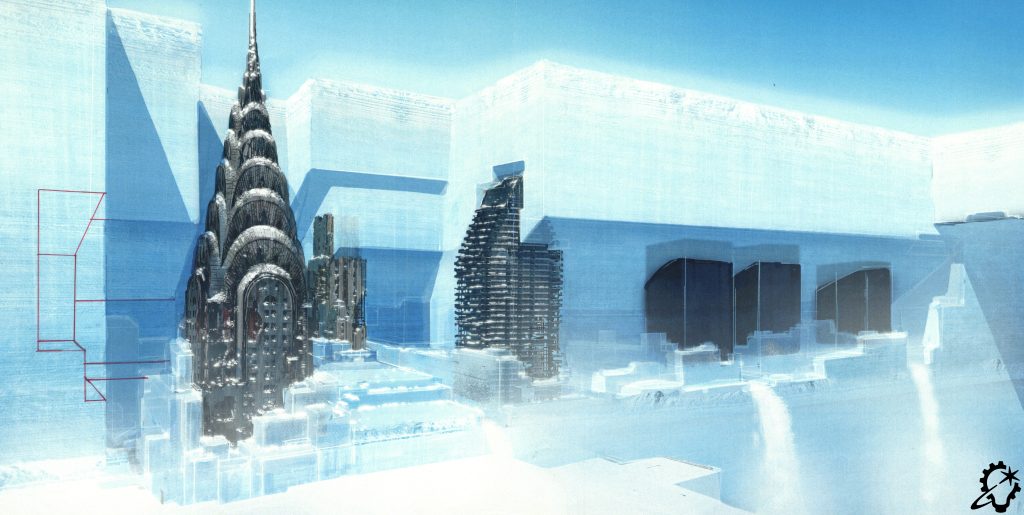 Turning to his time on A.I. Artificial Intelligence, Nakabayashi posits, “Those worlds – Coney Island, the Rouge City, an underwater theme park – were all absorbed through storyboards that Chris Baker did with Stanley Kubrick for a couple years. We started with that as our inspiration, and then we started doing colored artwork – paintings, drawings, some storyboards for shot ideas – and pitched those to [visual effects supervisor] Dennis Muren and numerous other people. It became this whole world of miniatures, and it was also on the brink of the digital component coming into the workflow. There’s a real marriage of practical effects, which I will still say is the most fun to work on, with the digital component.”